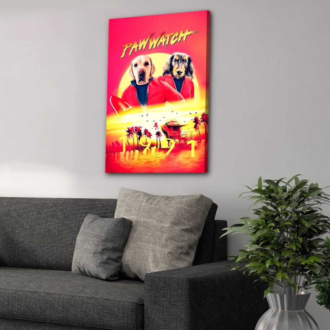 ¿Puedes imaginarte las adorables caras de tus mascotas en nuestro lienzo personalizado 'Paw Watch 1991'? Nuestros lienzos con calidad de galería , envueltos a mano sobre un marco de madera dura, están impresos con tintas de primera calidad y revestimiento UV para resistir los rayones .